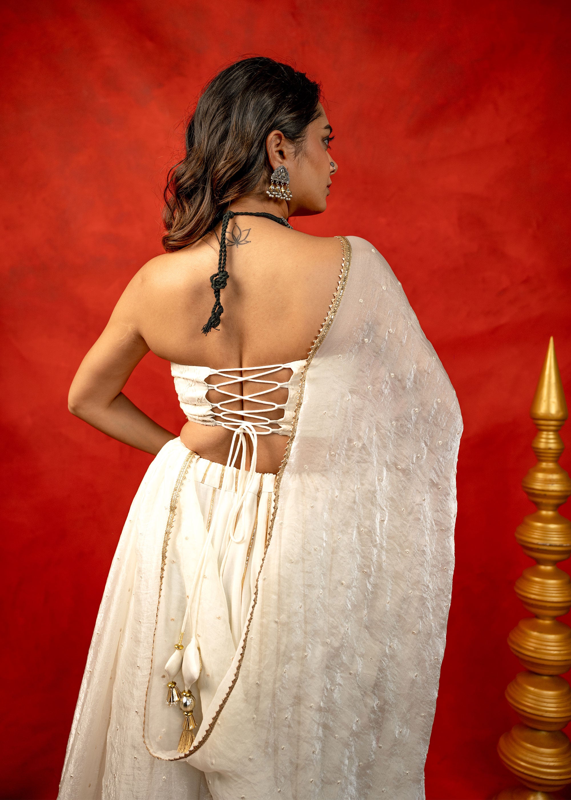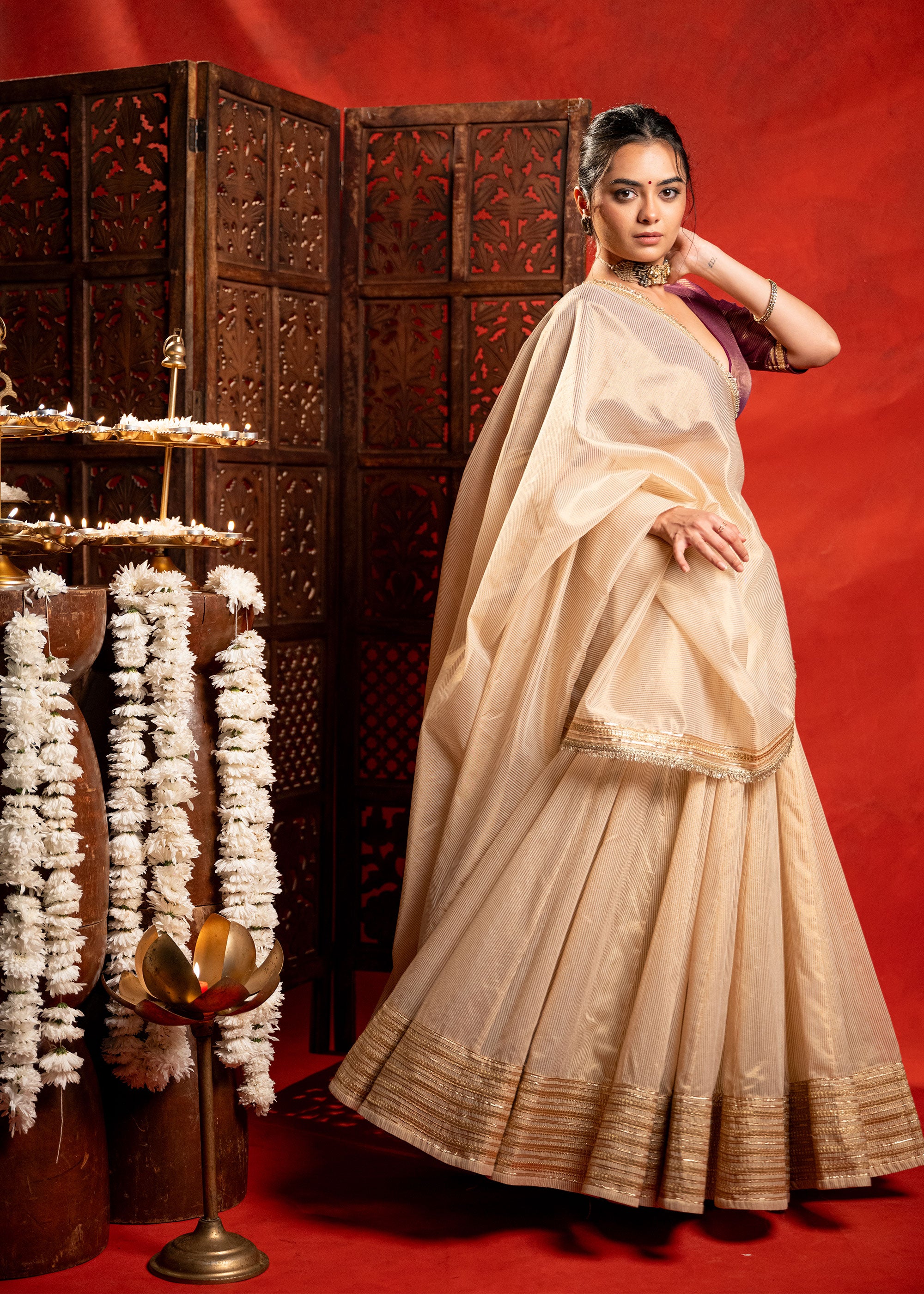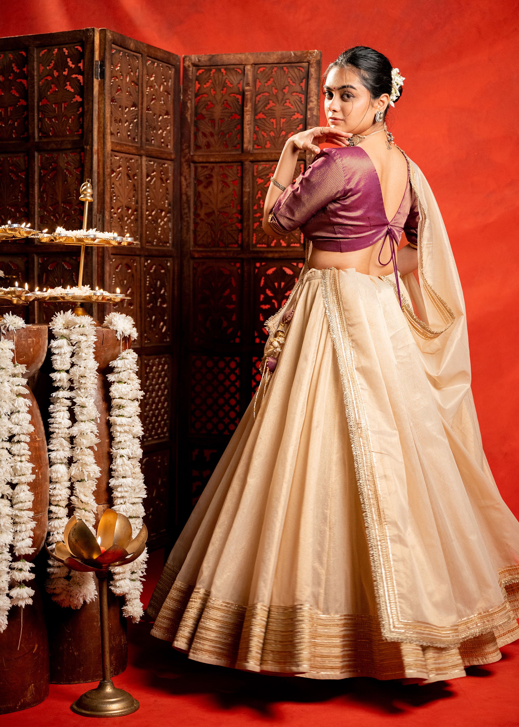 Gold Chanderi strip Chaniya Choli set