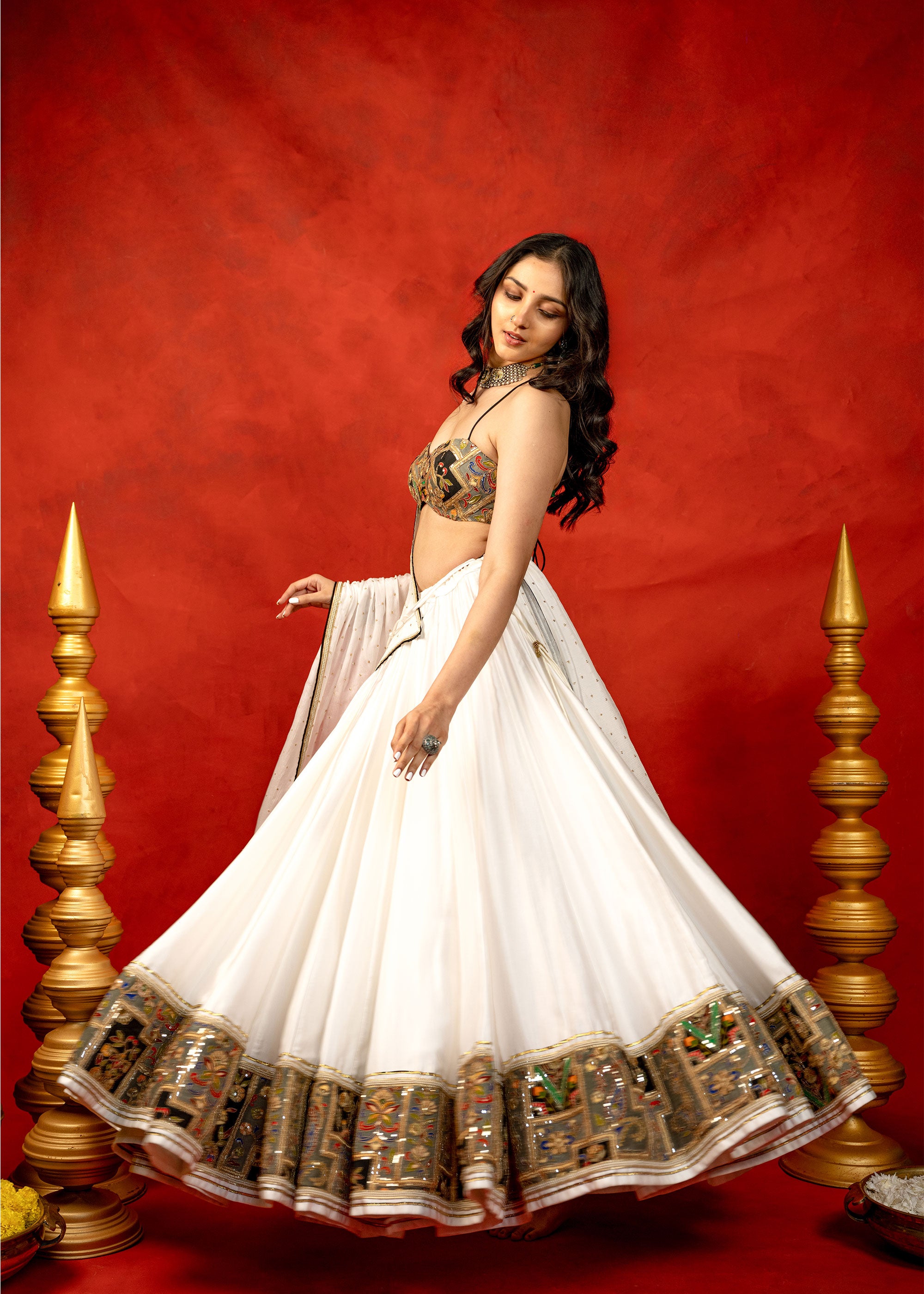 Godet Mirror Chaniya Choli set